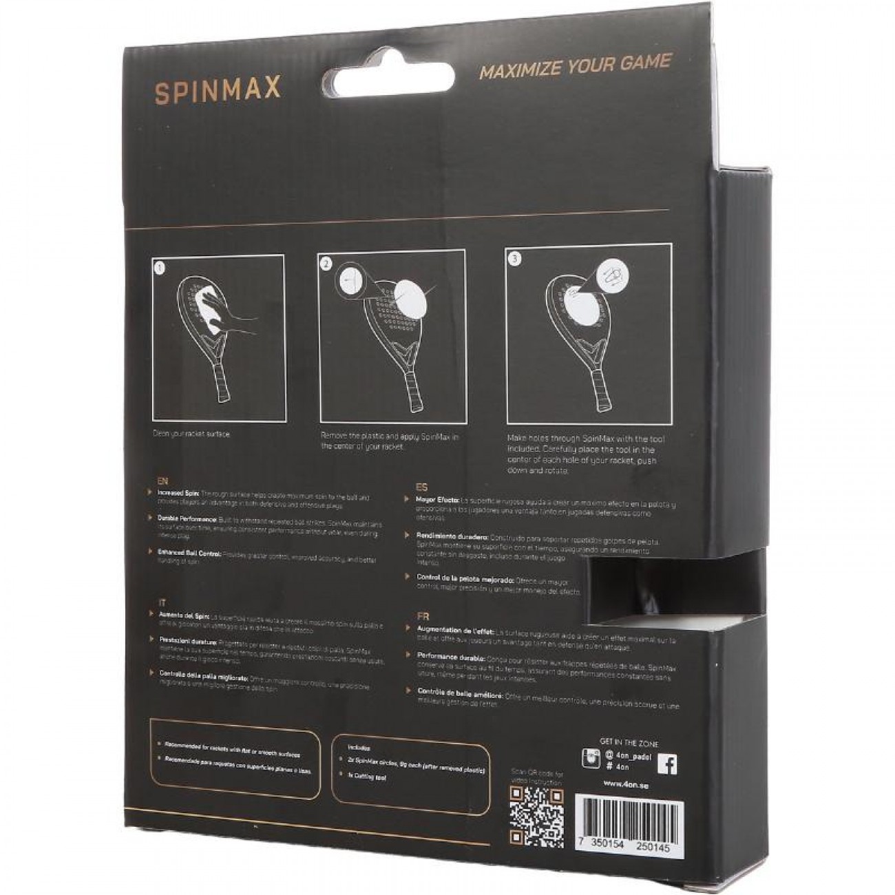 SpinMax aumenta la fricción entre la superficie de la pala y la pelota, permitiéndote ejecutar golpes más agresivos y con mayor carga de efecto sin perder el control.