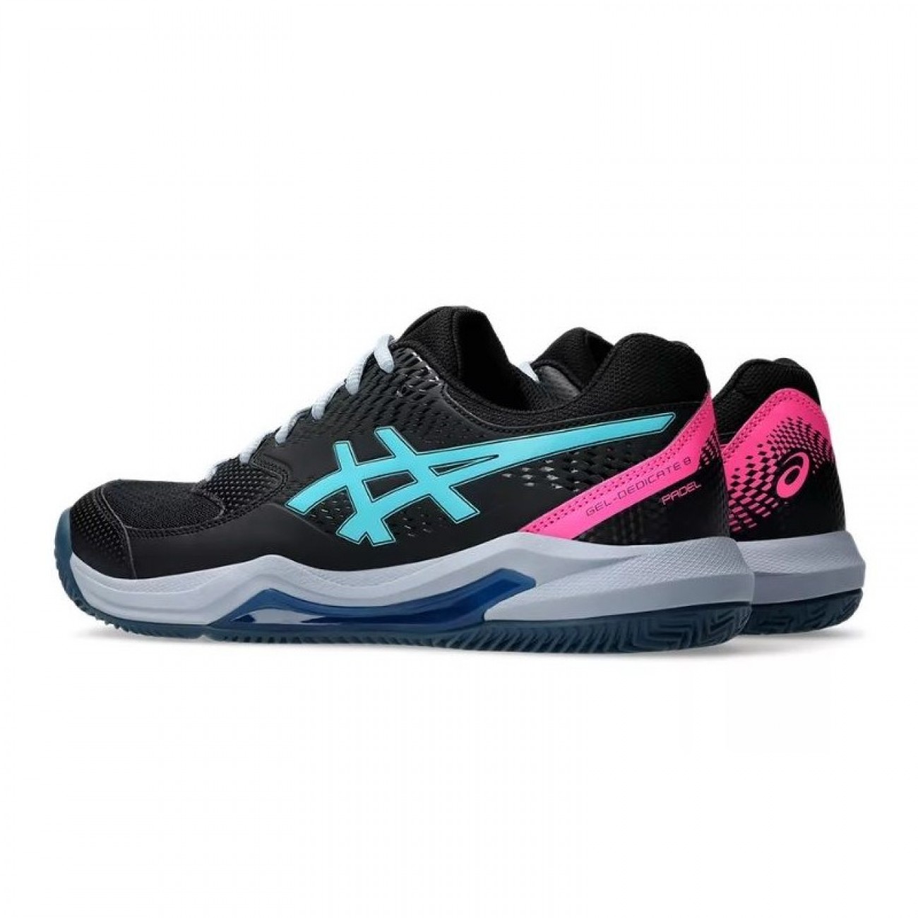 Las zapatillas ASICS GEL-DEDICATE 8 PADEL en color Negro Aqua están diseñadas para ofrecer una combinación óptima de estabilidad y flexibilidad en la pista de pádel.